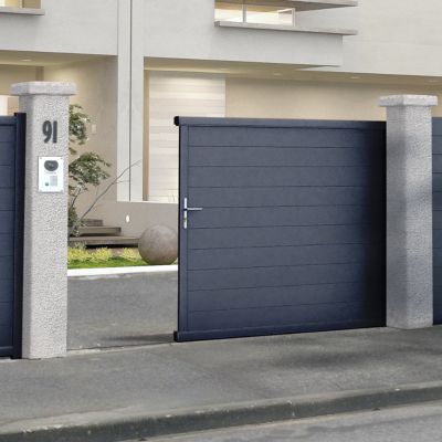 - Portail En Aluminium Coulissant Motorise Blade Gris 350 Cm Castorama