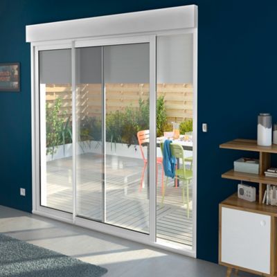 - Baie Coulissante Aluminium Avec Volet Roulant Motorise Blanc 240 X H 215 Cm Castorama